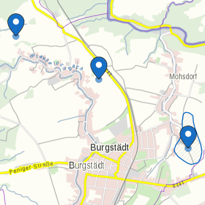 Im Suchschlitz Wo? kann über eine Auswahlliste eine räumliche Eingrenzung vorgenommen werden. Während der Eingabe eines geografischen Ortes wird automatisch eine Liste mit Vorschlägen angezeigt. Aus dieser Liste muss ein Eintrag ausgewählt werden. Wird kein Eintrag aus der Vorschlagsliste ausgewählt, wird die Suche auf ganz Sachsen durchgeführt.